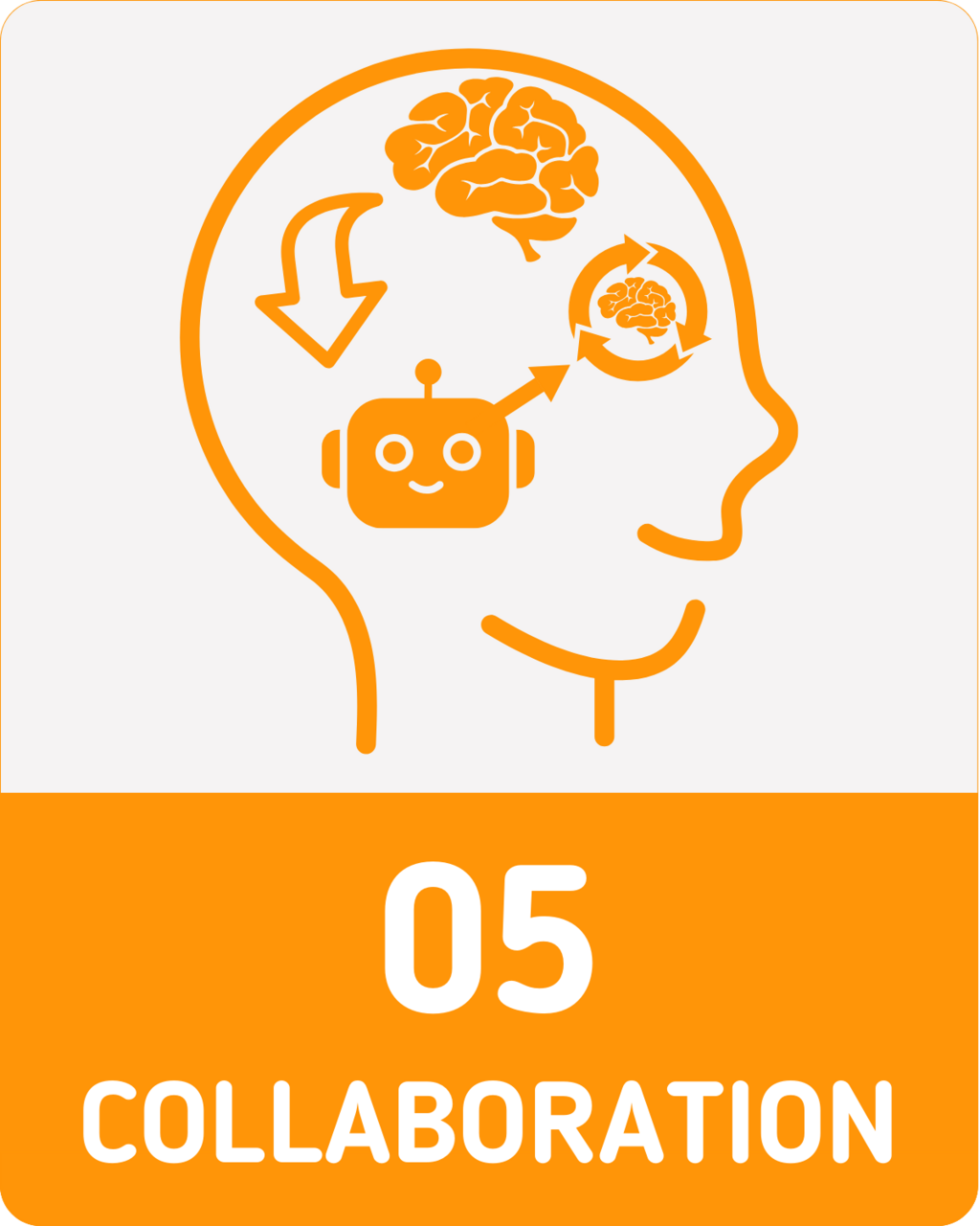 ÉchiaGen propose 6 niveaux de co-création avec une IAGen. Elle permet de préciser finement l'utilisation d'une IAGen au delà du signalement binaire j'ai utilisé / je n'ai pas utilisé. Elle privilégie une approche cobotique qui considère la relation homme-IAGen sous l'angle d'une collaboration homme-robot.